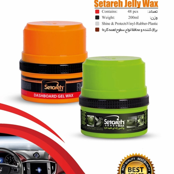 واکس ژله ای ستاره مناسب براق کردن سطوح داشبورد ، چرم و سطوح لاستیکی ، چوبی فایبر گلاس ، پلاستیکی ، وینیلی می باشد که با بهره گیری از موادخارجی با کیفیت ، از سطوح در مقابل گرما ، سرما و تغییرات آب و هوایی محافظت نموده و براقیت و تازگی به داخل خودرو ولاستیک های ماشین می بخشد